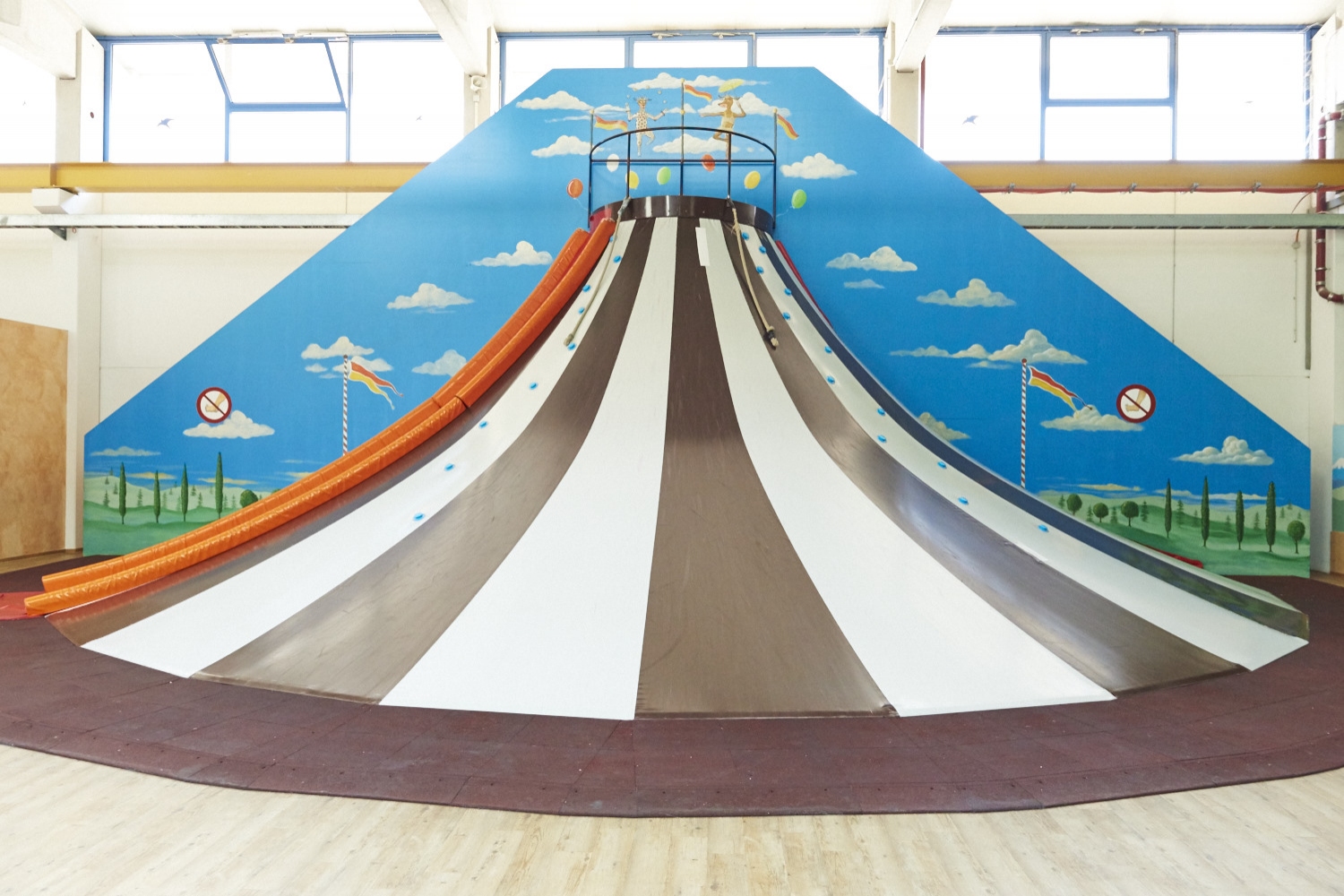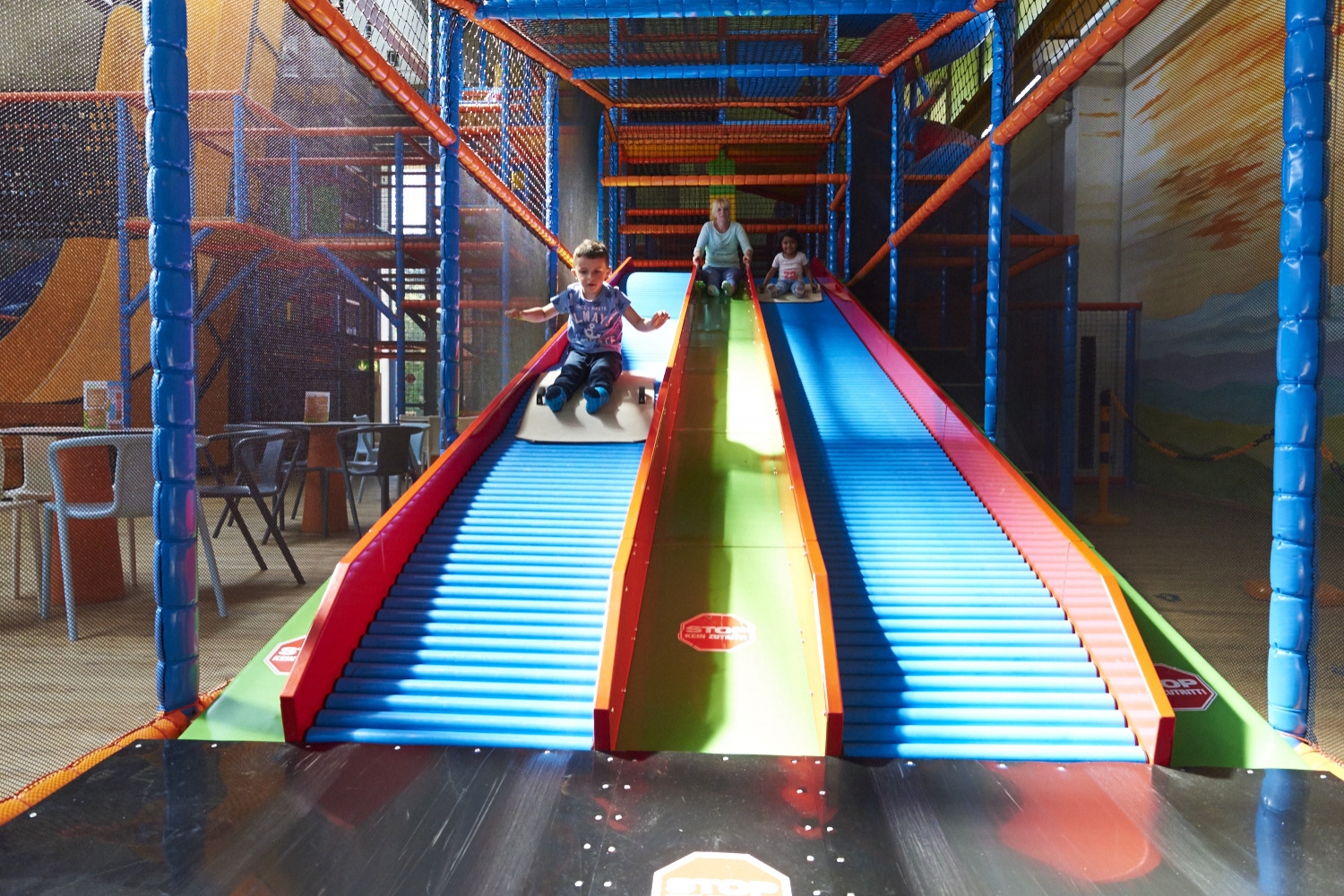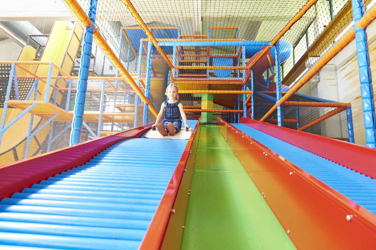 Nervenkitzel pur. Die Dropslide–Rutsche ist für Kinder ab 6 Jahren erlaubt. Achtung! Es darf nicht mit synthetischer Kleidung (z.B. Trikots etc.) und nur mit langen Hosen gerutscht werden.